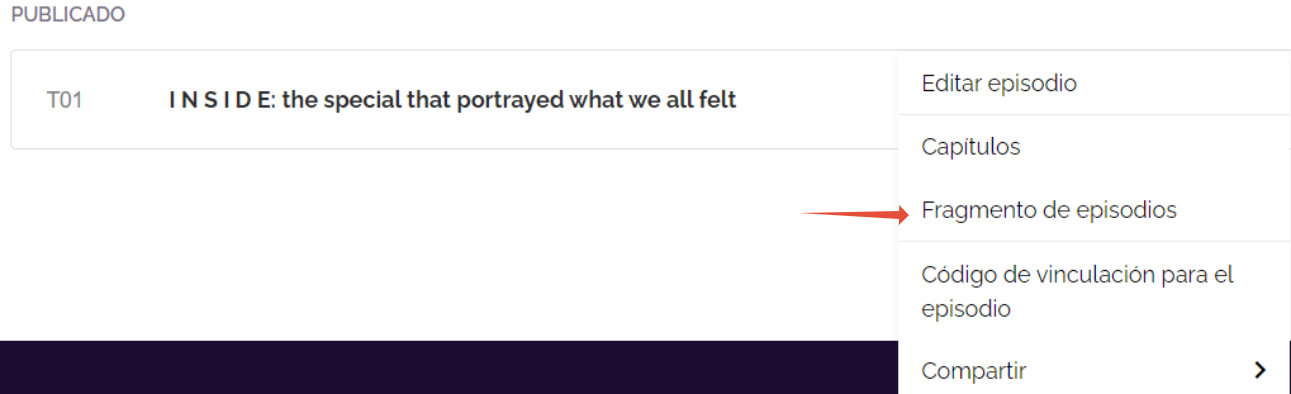 2. Después, haz click en "Fragmento de episodio" en el menú plegable.