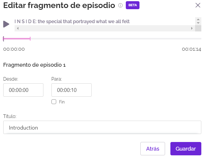 3. Va a salir una ventana donde podrás editar tu fragmento de episodio