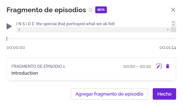 6. Si quieres editar tu fragmento de episodio, puedes hacer click en el ícono del lápiz: