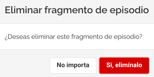 Si deseas eliminar un fragmento de episodio previamente creado, por favor sigue estas instrucciones: