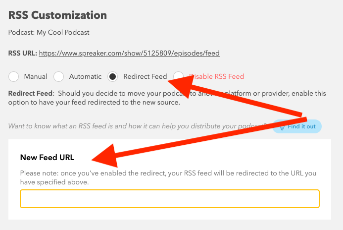 Se vuoi attivare il redirect del tuo feed da Spreaker.com a RSS.com segui i seguenti passi: