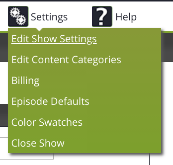 2. Clicca sulla voce "Settings" e successivamente su "Edit Show Settings"